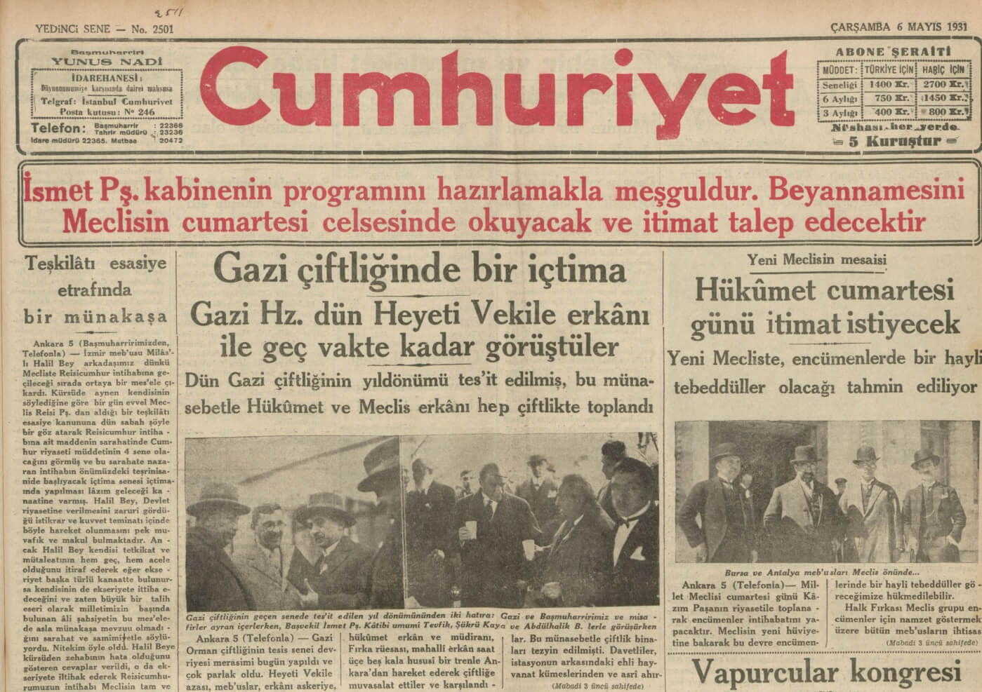 6 Mayıs 1931 tarihli Cumhuriyet gazetesinde Çiftlik’teki etkinliğin yıl dönümünde bahsi geçen fotoğraf yeniden şu ifadelerle paylaşılmış: