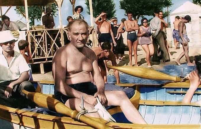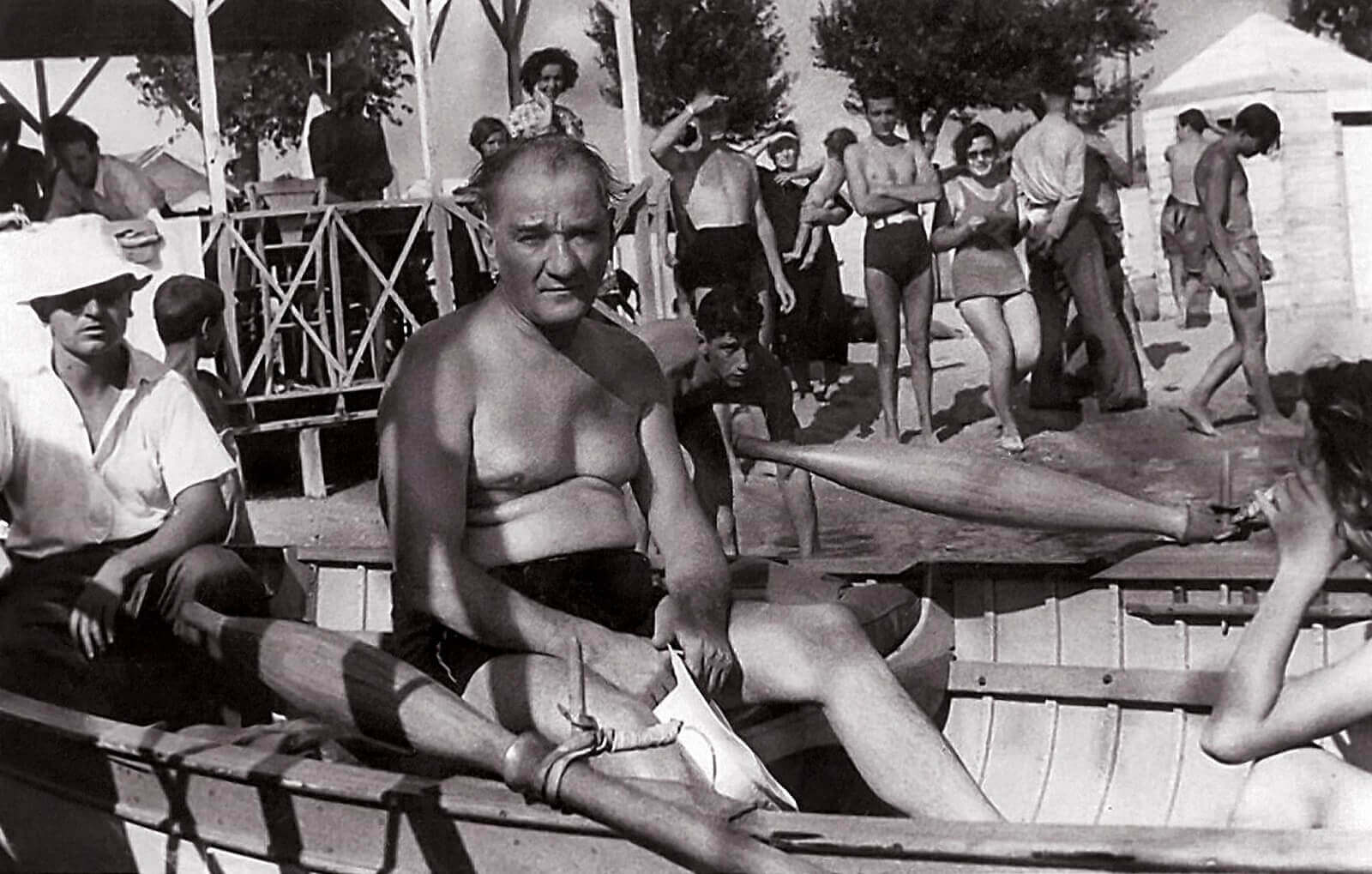İLAVE: 4 Temmuz 1935 günü Mustafa Kemal Atatürk İstanbul’da Florya sahilinde denize girerken kaydedilen fotoğrafta yanında görülen kişi, Atatürk’ün hayatı boyunca yanından ayırmadığı tek kişi olan, en yakın arkadaşı Salih Bozok.