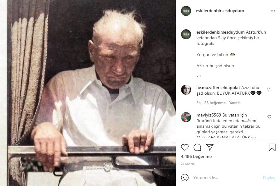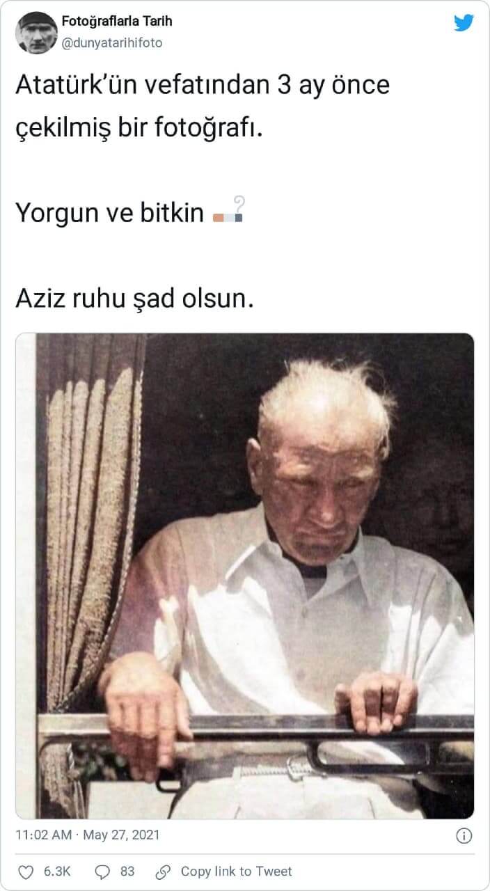 Mustafa Kemal Atatürk’ün vefatından 3 ay öncesinde kaydedildiği iddiasıyla paylaşılan bahse konu fotoğraf, Atatürk’ün Trakya Manevralarını izlemek için Çerkezköy’den Lüleburgaz’a özel treniyle hareket ederken 17 Ağustos 1937 tarihinde çekilmişti.