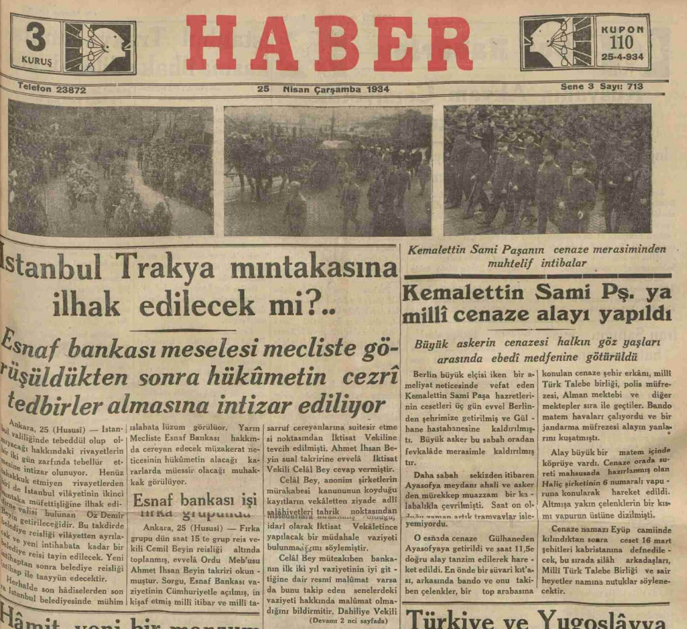 “Takvimler 19 Nisan 1934’ü gösteriyor. Berlin’de bütün bayraklar yarıda. Kapatılan caddeden askerlerin arasında top arabasında geçen cenazeyi halk Nazi selamıyla uğurluyor. Cenazenin arkasında Hitler’in kabinesi, generalleri, yakın adamları tam kadro yürüyor. Tek tuhaflık tabutun üzerindeki Türk bayrağı. Büyükelçilik’ten tren garına taşınan cenaze Türkiye Büyükelçisi Kemalettin Sami Paşa’ya ait. Paşa, Atatürk’ün “yarın cumhuriyeti kuruyoruz” dediği birkaç kişiden, İstiklal Harbi komutanlarından biriydi. O yüzden 1925’te Şeyh Said ayaklanmasını bastırma görevini de ona vermişti. Tabii, “ayaklanma acımasızca bastırılacak, Kürtler silahsızlandırıp, çoğunluk oluşturmayacak şekilde ülkeye dağıtılacak”tan oluşan üç maddelik planını da kabul ederek. Hitler’le randevusuz görüşebilen tek büyükelçi olan paşa bir trafik kazasında hayatını kaybedince böyle görkemli bir resmî törenle Türkiye’ye uğurlandı.”