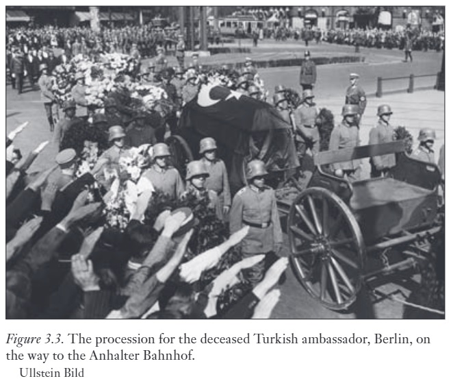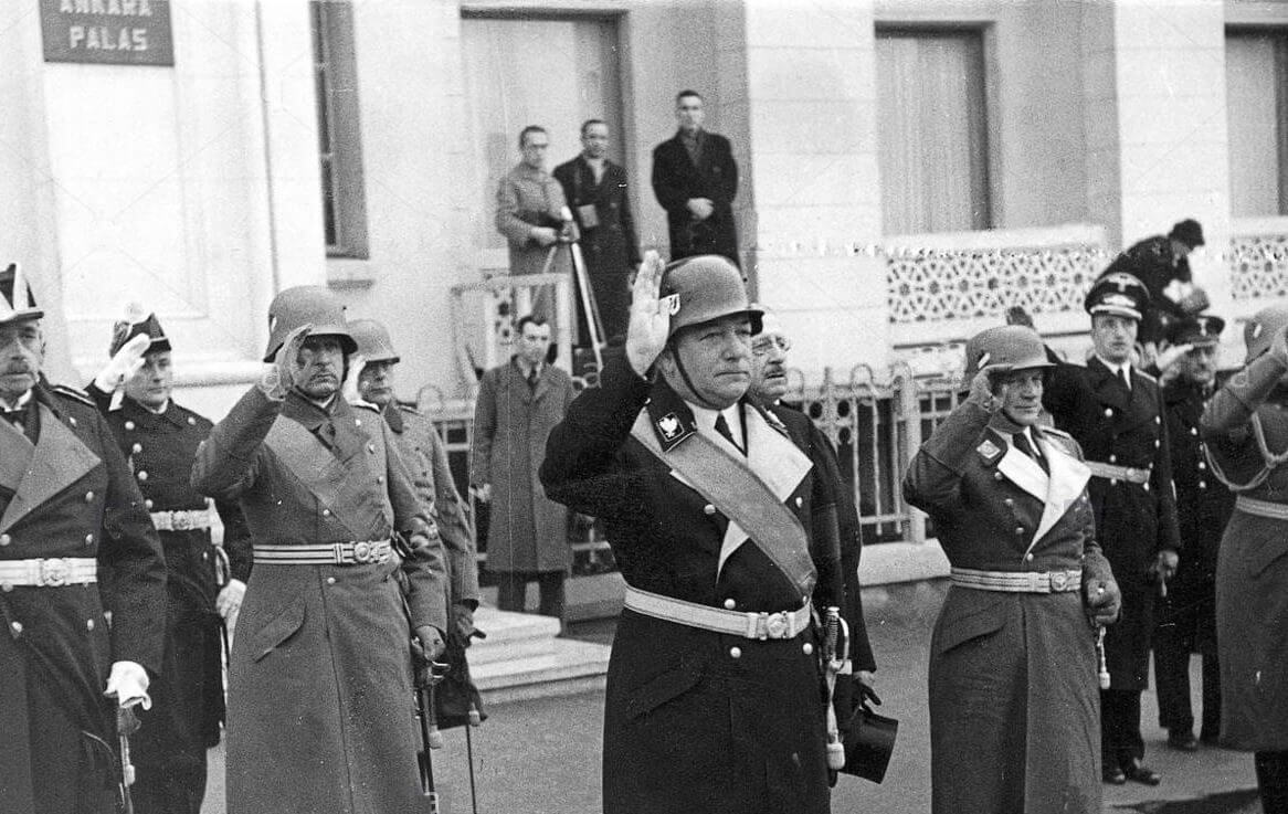 Diplomatik teamül gereği cenaze törenine katılarak Atatürk’e saygılarını sunan yabancı ülke temsilcileri arasında dönemin Nazi Almanyasından subaylar da yer almıştı (Her ülke temsilcisinin Atatürk’ün naaşına yönelik kendi usulleri ve teamülleri çerçevesinde selamlamada bulunduğu görülebiliyor).