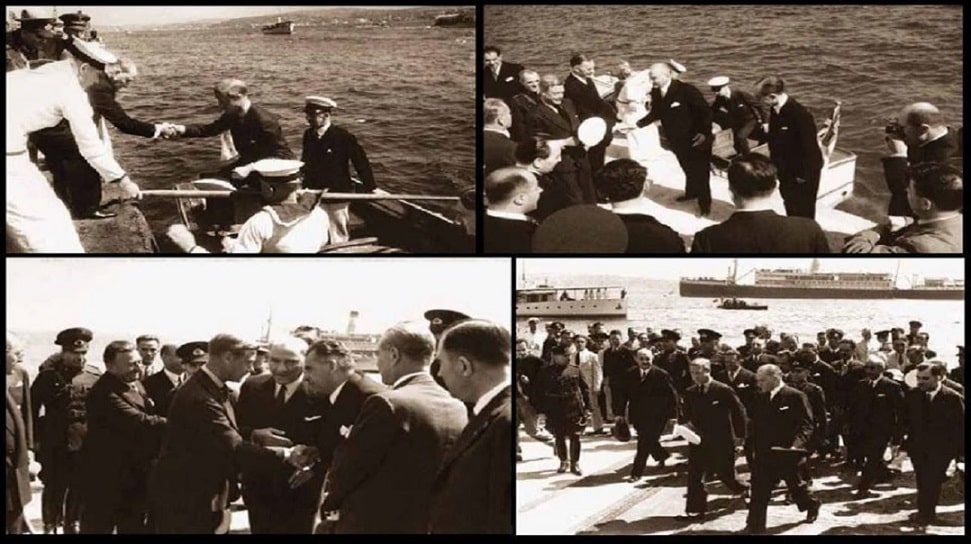 Birgün Kral Edward, Türkiyeye Gelir Yatından inip Tekne İle Dolmabahçe Rıhtım’a Geçer Ve Kendisini Mustafa Kemal Atatürk Karşılar.