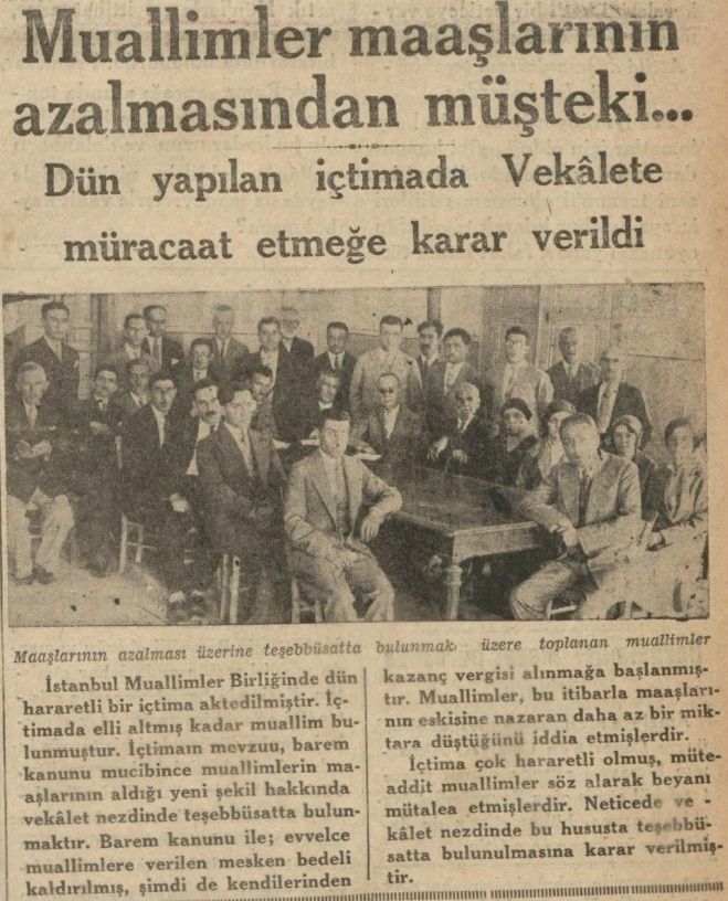 Milli Eğitim Bakanı Hasan Ali Yücel tarafından 7 Aralık 1939 tarihinde Başbakanlığa iletilen bir resmi yazıda basında çıkan öğretmenlerin maaşlarının düşüklüğüne ilişkin haberlerden sitem etmekte ve “bugünlerde gazetelerimizden bâzılarında muallimlerimizin maddî vaziyetlerinin bozuk olduğu hakkında neşriyâta tesâdüf edilmekte ve bunlar arasında büyük puntolu harflerle ‘muallimlerin hâli berbat’ başlığı altında muallim kütlesini heyecâna sevk edecek yazılar da görülmekte” ifadelerini kullanmıştır. Bakan Yücel “muallimler kütlesini Cumhuriyet devrinde mağdur mevkiinde göstererek, onları heyecâna ve bedbinliğe sevk edecek, mesleklerine kaşrı bağlılıklarını sarsacak ve aralarında sendikalar teşkiline, grevler yapılmasına yol açacak ve öteden beri memleketimizde tesiri görülmekte olan komünizm propagandasını körükleyecek bir âmil olacağı kanatinde olduğumdan, hakikat ile taban tabana zıd bu gibi muzır fikirlerin muallim kitlesi arasında intişârına meydan verilmemesi için matbuat hakkında esaslı tedbirler alınması esbâbının temini“ni talep ederek bu gibi haberlere ilişkin tedbir alınmasını istemişti (Cemil Koçak (2011). Tek-Parti Döneminde Muhalif Sesler, İletişim Yayınları).