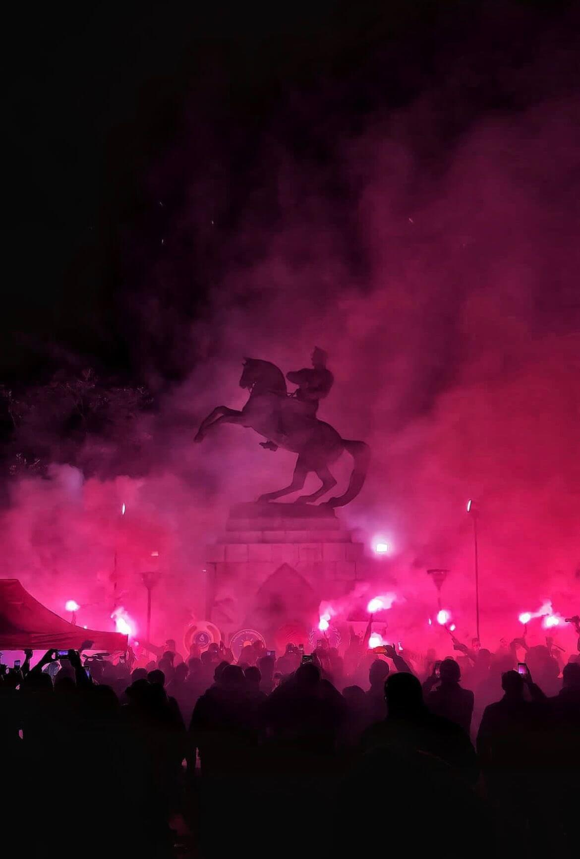 “Atatürk’ün 19 Mayıs 1919’da milli mücadeleyi başlatmak için Samsun’a ayak bastığı noktada, onur anıtı olarak bilinen “Atatürk Anıtı”na yapılan saldırı; 19 Mayıs heyecanıyla protesto edildi. Ülkemizin kurucusuna ve milli değerlerine kimse el uzatamaz! #Samsun #Samsunspor”