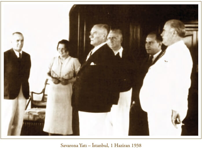 26 Mayıs 1938 günü son defa Ankara’dan ayrılan Atatürk İstanbul’da 1 Haziran 1938’de Dolmabahçe Sarayı’ndan Savarona Yatı’na geçti.