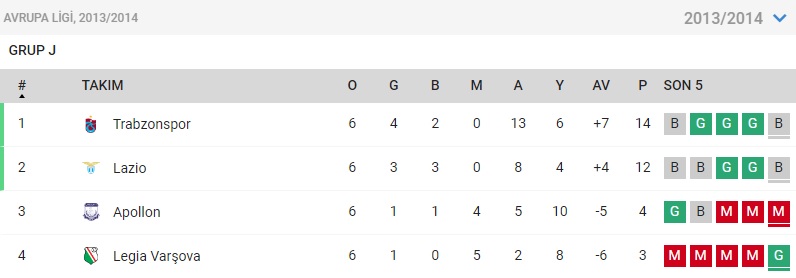 İLAVE: Trabzonspor, 2013-2014 UEFA Kupası J Grubu karşılaşmalarında yenilgiye uğramamıştı.