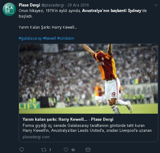 Plase Dergi’deki “Yarım kalan şarkı: Harry Kewell…” başlıklı 1 Haziran 2019 tarihli yazısında Furkan Kahraman da bu hataya düşmüş: