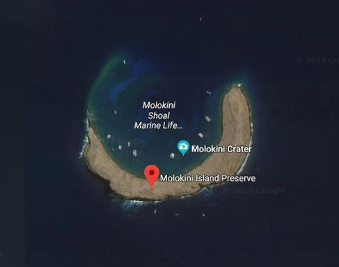 20.6319212-156.4983095 konumundaki Molokini Kraterinin uydu görüntüsü incelendiğinde, iddia edilenin aksine adanın şeklinin yıldız şeklinde bir kayalık ya da toprak parçası içermediği görülmektedir.