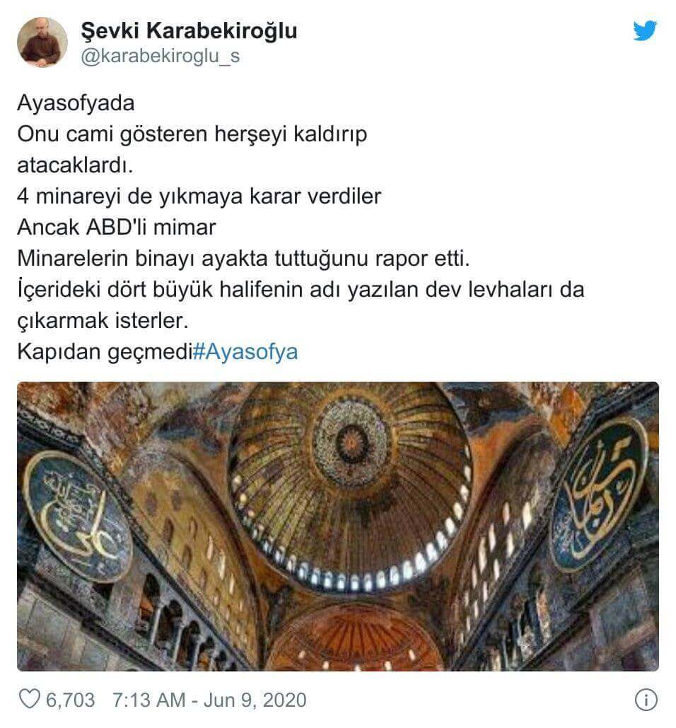 “Ankara’dan gelen bir emir üzerine, bu gece Ayasofya’nın dört minaresini temeline kadar indireceğiz. Bütün hazırlıklar yapıldı” dedi.