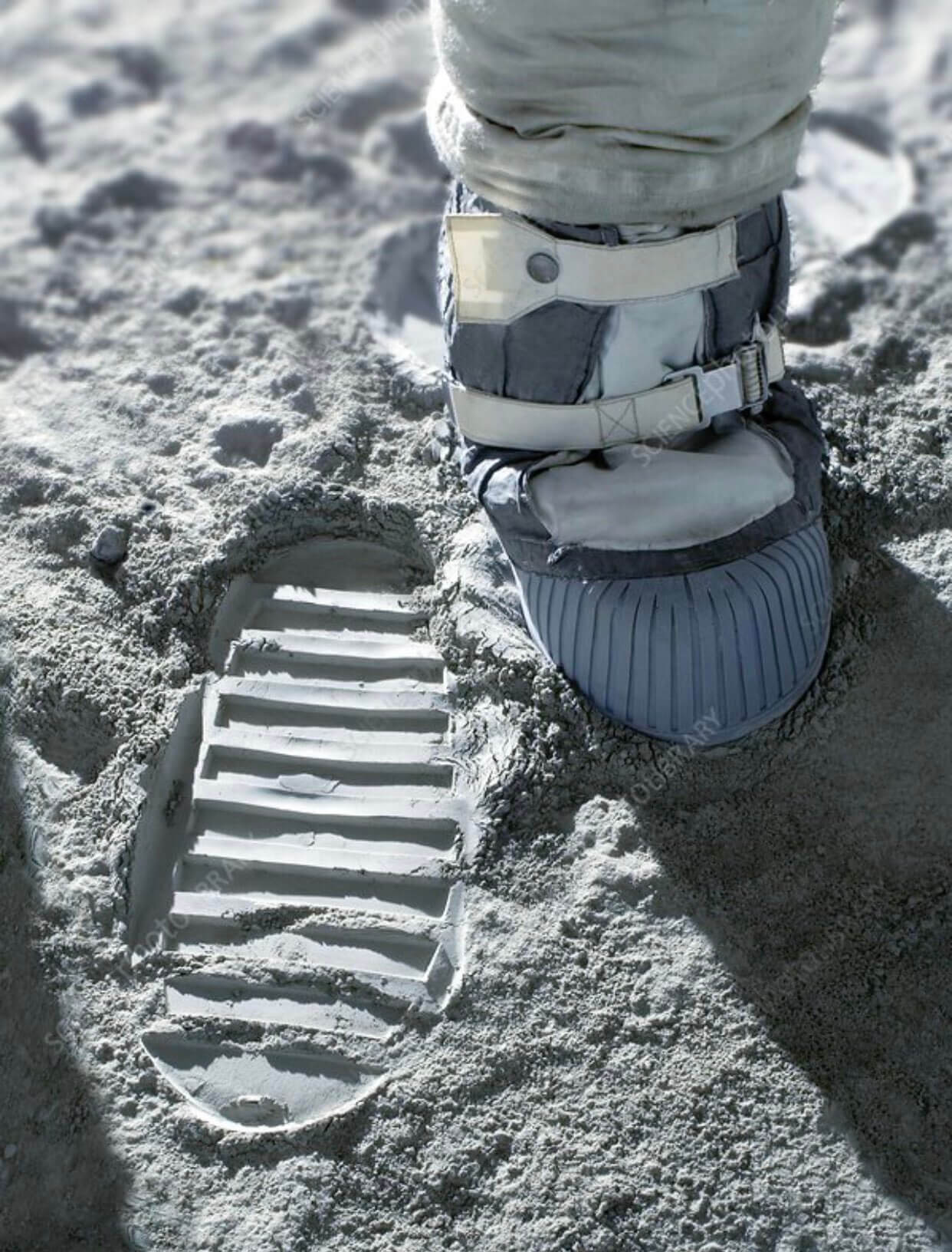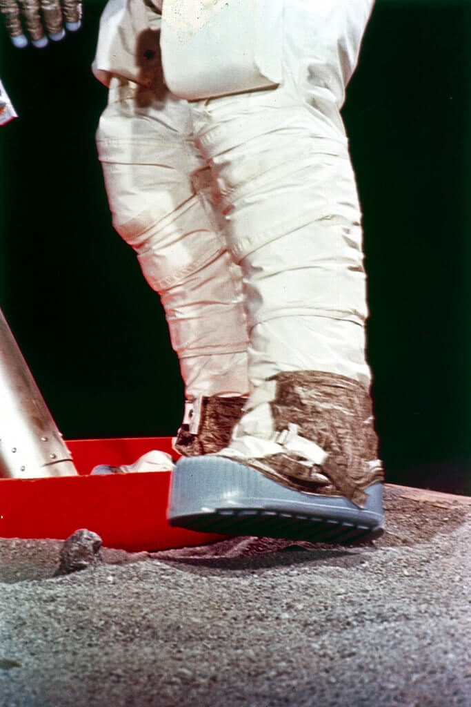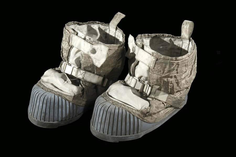 Tabanı düz olan ayakkabılar üzerine tırtıklı yapısı ve ilave ağırlığı ile Ay yüzeyinde yürüyüşü kolaylaştırması ve Ay tozunun giysilerinin içine girmesini önlemesi adına astronotların bir kat daha dış bot geçirdiği biliniyor. Dış mekan yürüyüşü için kullanılan bu dış botların tabanı ile Ay yüzeyinden ayak izi örtüşüyor.