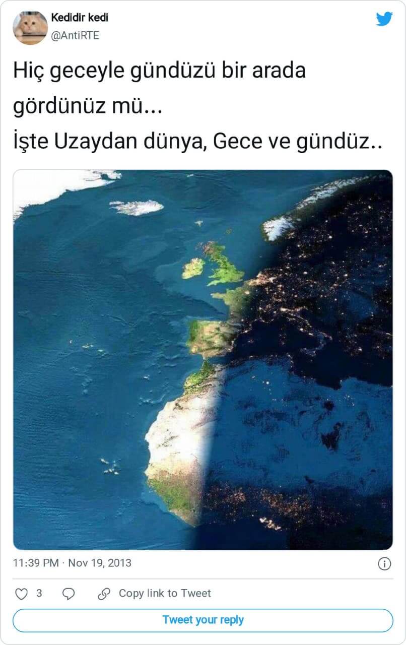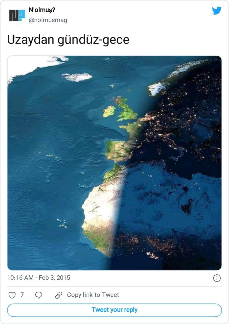 “Hiç geceyle gündüzü bir arada gördünüz mü… İşte Uzaydan dünya, Gece ve gündüz..”