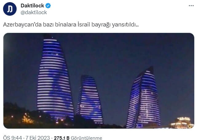 Daktilock (@daktilock): “Azerbaycan’da bazı binalara İsrail bayrağı yansıtıldı..”