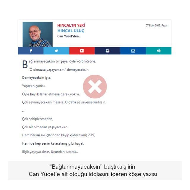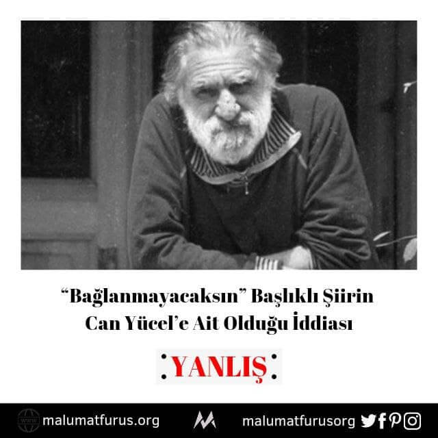 “Bağlanmayacaksın” Başlıklı Şiirin Yazarının Can Yücel Olduğu İddiası Doğru Değil