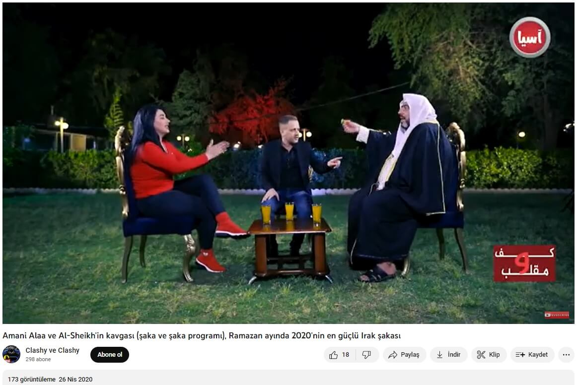 Görüntü, Asya TV (Asia TV / Asia Network Television / قناة آسيا الفضائية) adlı Irak merkezli bir TV kanalında 2020 yılında Ramazan ayında yayınlanan komedi programından alınmış.