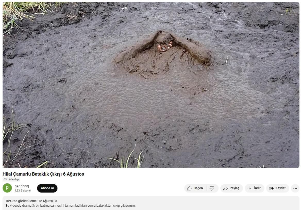 Söz konusu bataklık müptelâsı zevatın bataklık konusunda (adeta) uzmanlaşmış YouTube kanalında boğulup öldüğü sanılan görüntünün devamını paylaşmış.