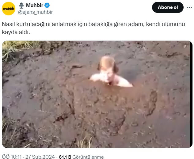Muhbir (@ajans_muhbir): “Nasıl kurtulacağını anlatmak için bataklığa giren adam, kendi ölümünü kayda aldı.”
