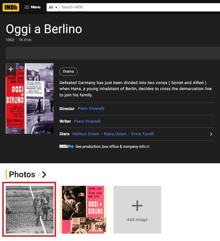 1962 yılından Oggi a Berlino adlı filmden görüntünün kesilmiş versiyonu, Batı ve Doğu Almanya polislerinin sınır hattında karşı karşıya geldiği ana ait olduğu sanılarak paylaşılmış.