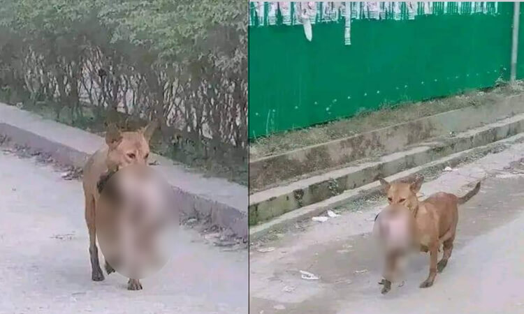 Bangladeş’in Mymensingh kentindeki Tıp Fakültesi yakınında bir bebeğin köpek tarafından taşındığı ana ait fotoğraf 2024 yılı Ocak ayı ortasında paylaşılmış.