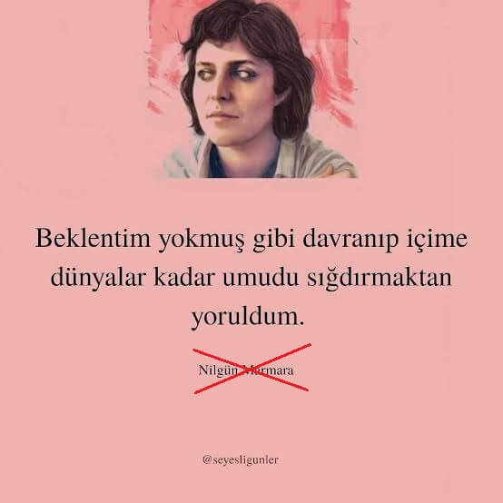 Nilgün Marmara’nın “Beklentim yokmuş gibi davranıp, içime dünyalar kadar umudu sığdırmaktan yoruldum.” dediği yerden yolumuz en az bir kere geçmiştir…#NilgünMarmara