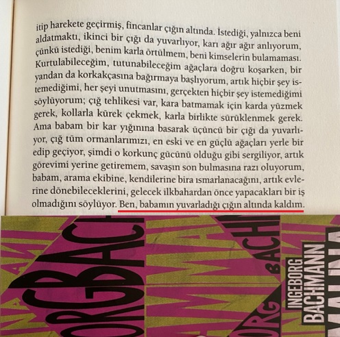 Ben babamın yuvarladığı çığın altında kaldım” sözü Ingeborg Bachmann’in Malina romanında şöyle geçmişti: