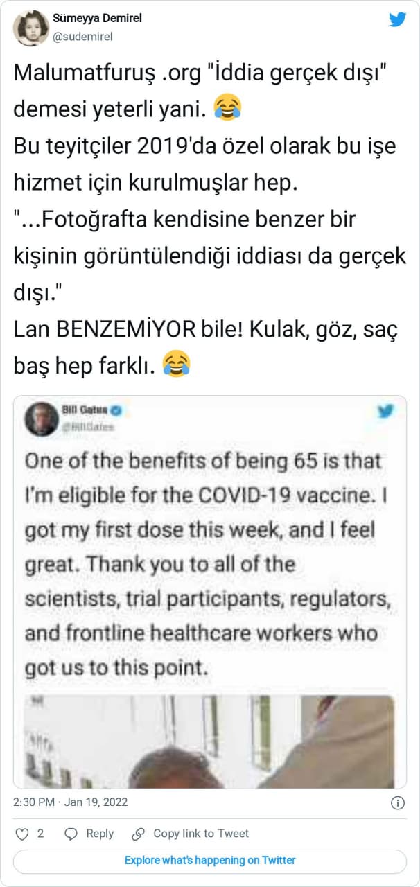 Aşı karşıtı ya da tereddütlüsü bazı sosyal medya kullanıcılarının salgının müsebbibi olarak gördükleri Microsoft’un kurucusu Bill Gates’in koronavirüse karşı geliştirilen aşıyı aslında olmadığını iddia ettiğine şahit oluyoruz.