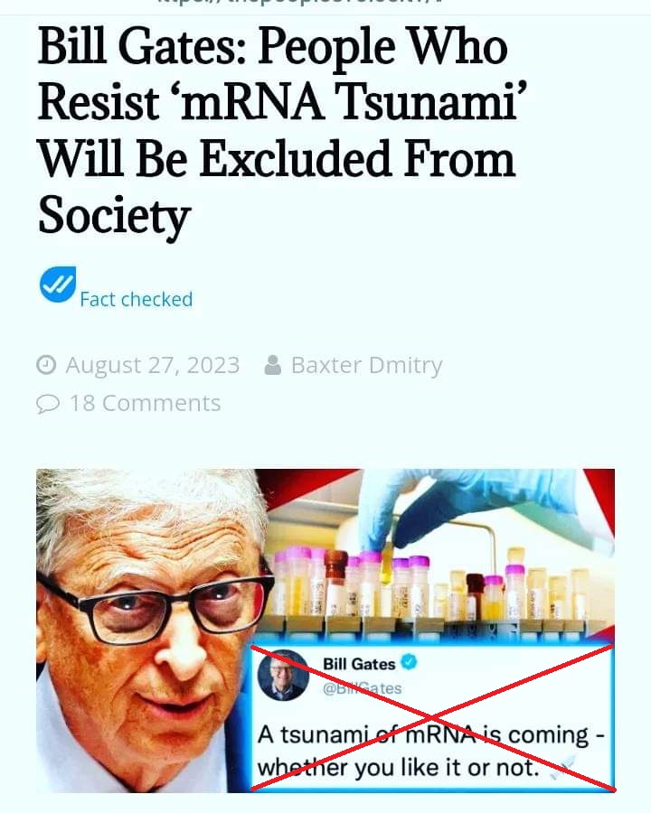 İddianın kökeni “The People’s Voice” (“Halkın Sesi”) adlı “Bill Gates: People Who Resist ‘mRNA Tsunami’ Will Be Excluded From Society” başlığıyla 27 Ağustos 2023 günü yayımlanan yazıya dayanıyor.