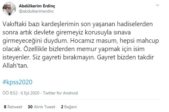 Özellikle (6 Eylül 2020 tarihinde gerçekleşen) KPSS ile ilgili paylaşımı tepki toplamaya başladı.