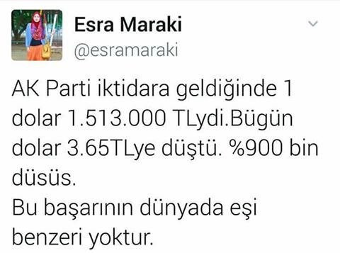 Örneğin, 6 Ocak 2017 tarihli tweetinde ise Türk lirasından atılan 6 sıfırı göz ardı eden bir profil çizmiş: