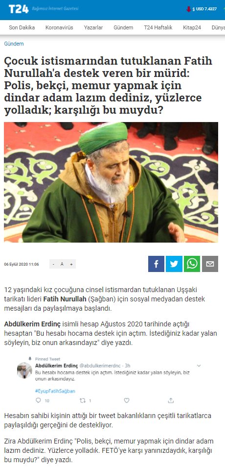4 saattir faal profilin gerçekliğini sorgulamadan teyit etmeden hemen haberleştiren ve gündeme sirayet etmesini sağlayan T24, gelen tepkilerin ardından “Çocuk istismarından tutuklanan Fatih Nurullah’a destek veren bir mürid: Polis, bekçi, memur yapmak için dindar adam lazım dediniz, yüzlerce yolladık; karşılığı bu muydu?” başlıklı haberini ve ilgili sosyal medya paylaşımlarını silmişti.