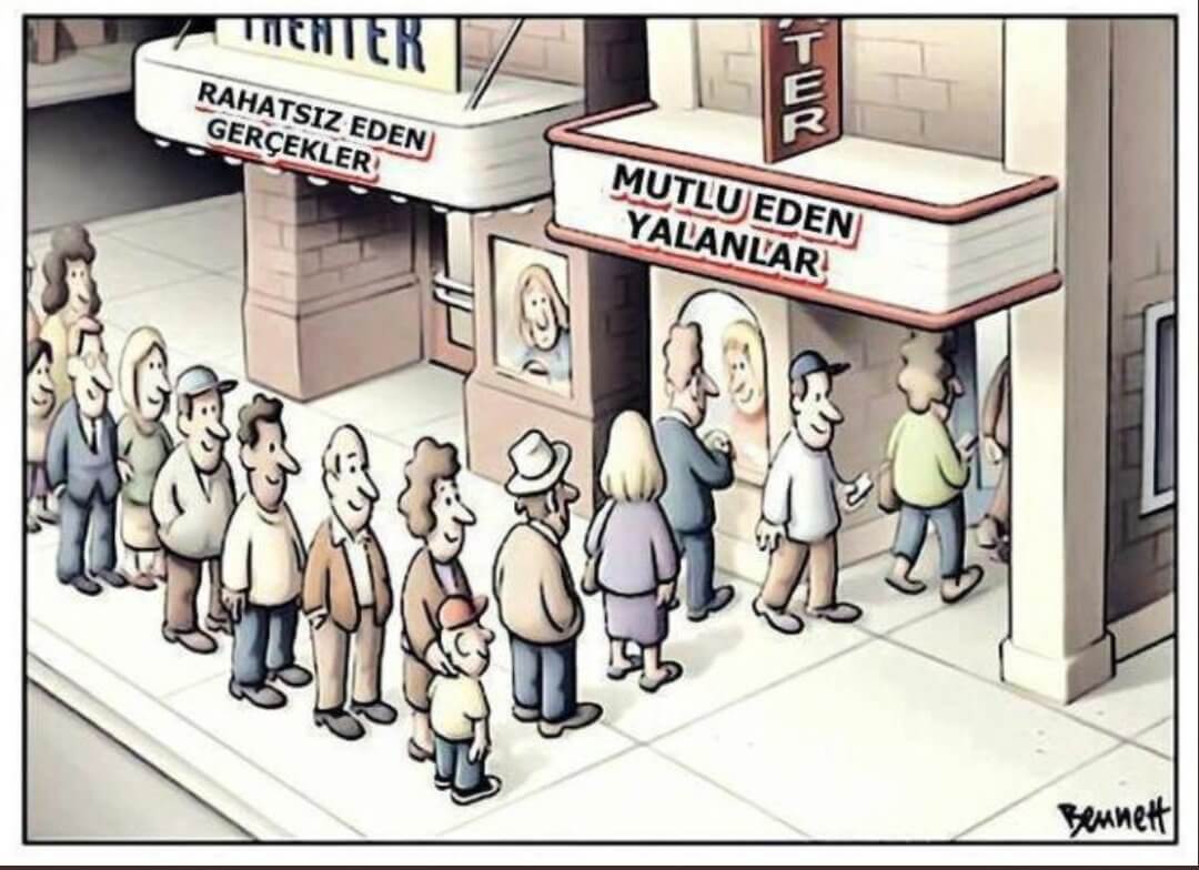 Bennett imzalı “rahatsız eden gerçekler (“an inconvenient truth”) ve “mutlu eden yalanlar” (“a reassuring lie”) temalı anlamlı karikatür ile yazıyı bitirmiş olalım…