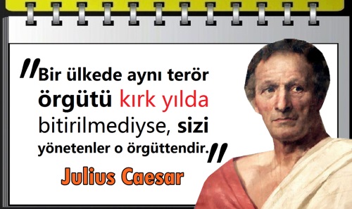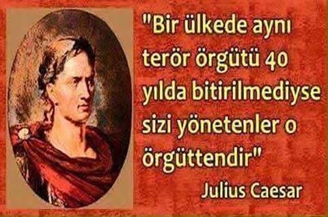 Roma İmparatorluğu diktatörü Gaius Jül Sezar’a (Julius Caesar – (MÖ 100 – MÖ 15 Mart 44)) ait olduğu iddiasıyla paylaşılan “bir ülkede aynı terör örgütü 40 yılda bitirilmediyse sizi yönetenler o örgüttendir” sözünü ele alacağız.