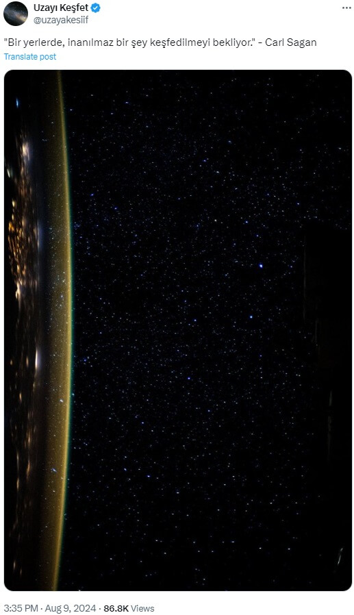 Uzayı Keşfet (@uzayakesiif): “”Bir yerlerde, inanılmaz bir şey keşfedilmeyi bekliyor.” – Carl Sagan”