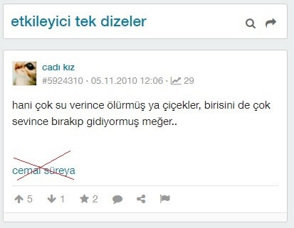 Ancak aktarımların aksine bahse konu söz, Cemal Süreya’ya ait değil.