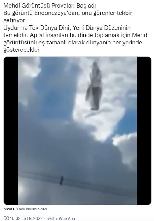 Gökyüzüne mehdi görüntüsünün yansıtıldığı iddiasıyla paylaşılan video da bunlardan biri…