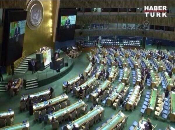Cumhurbaşkanı Erdoğan’ın BM Genel Kurulu’ndaki konuşması sırasında Birleşmiş Milletler Güvenlik Konseyi ‘Yabancı Savaşçılar Özel Oturumu‘ düzenlendiği için izleyici sayısının az olduğu aktarıldı.