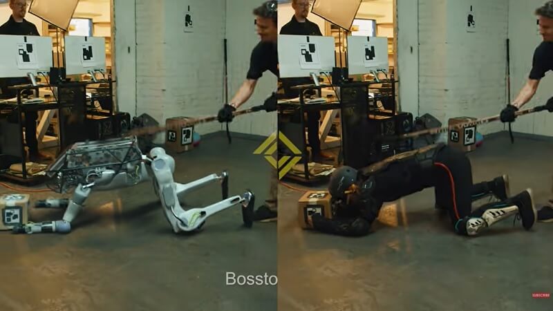 Robotların itilip kakıldığı videolar aslında “bilgisayar üretimli imgeleme” (“computer-generated imagery” – CGI) desteğiyle görsel efektle Corridor Digital tarafından “Bosstown Dynamics” adıyla oluşturulan kayıtlar…