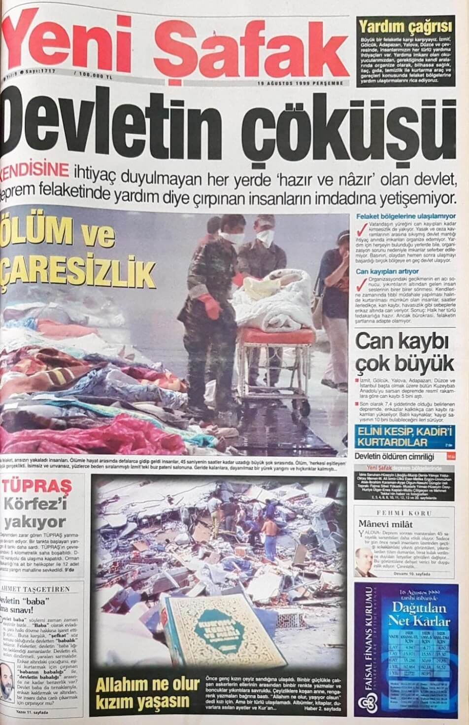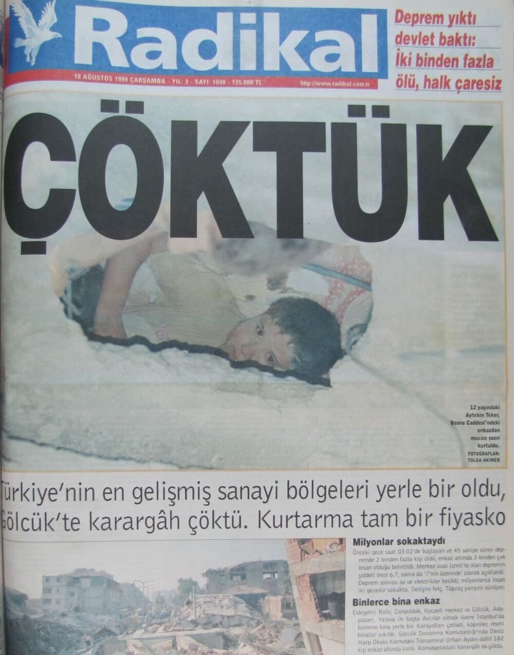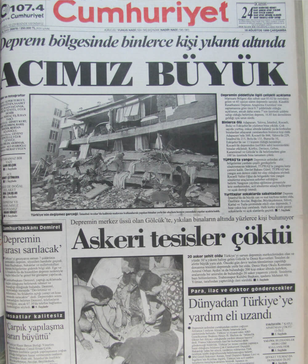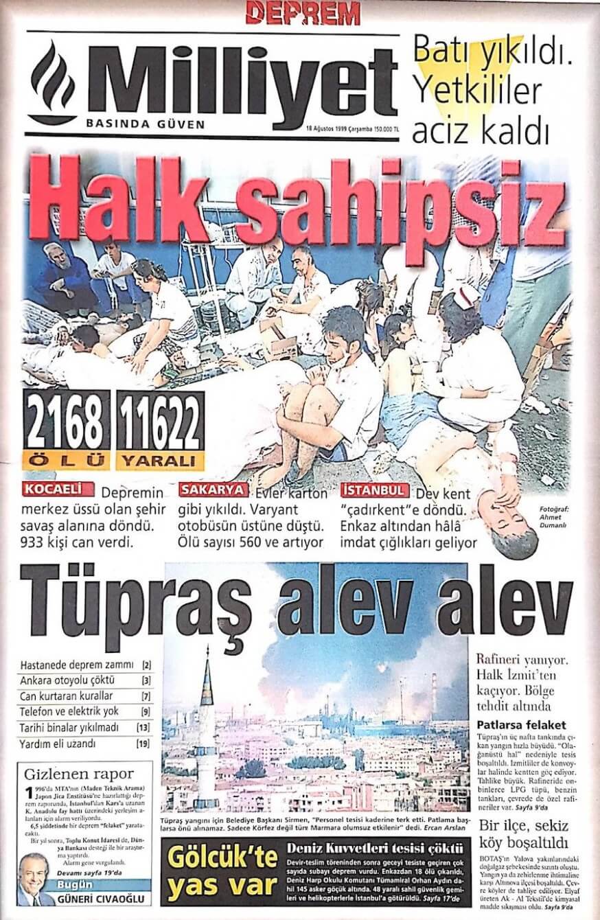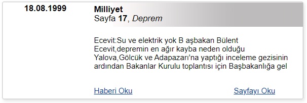 Örneğin, 18 Ağustos 1999 tarihli Milliyet gazetesi, Bülent Ecevit’in Yalova, Gölcük ve Adapazarı’na yaptığı inceleme gezisini haberleştirmişti.
