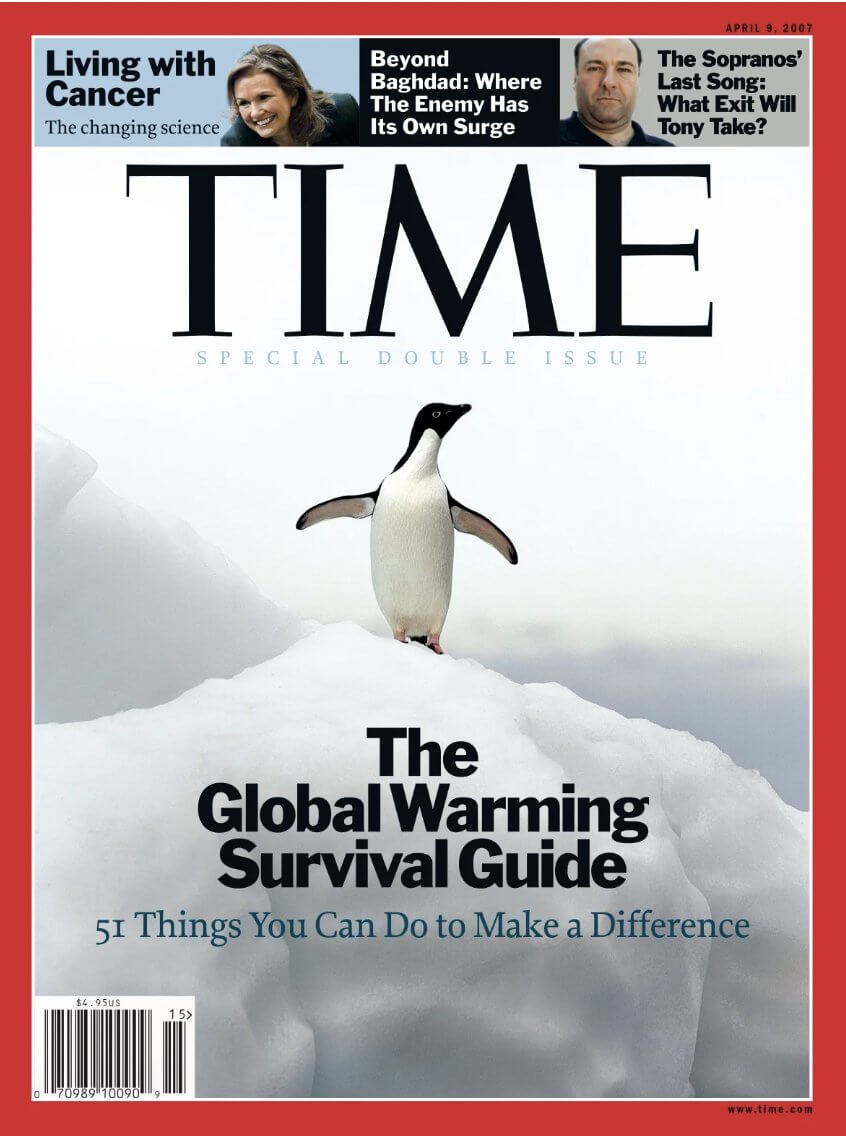Time’ın 1977 yılında yayımlanan kapaklarında görseldeki gibi penguenli bir fotoğrafa yer verilmediği görülüyor.