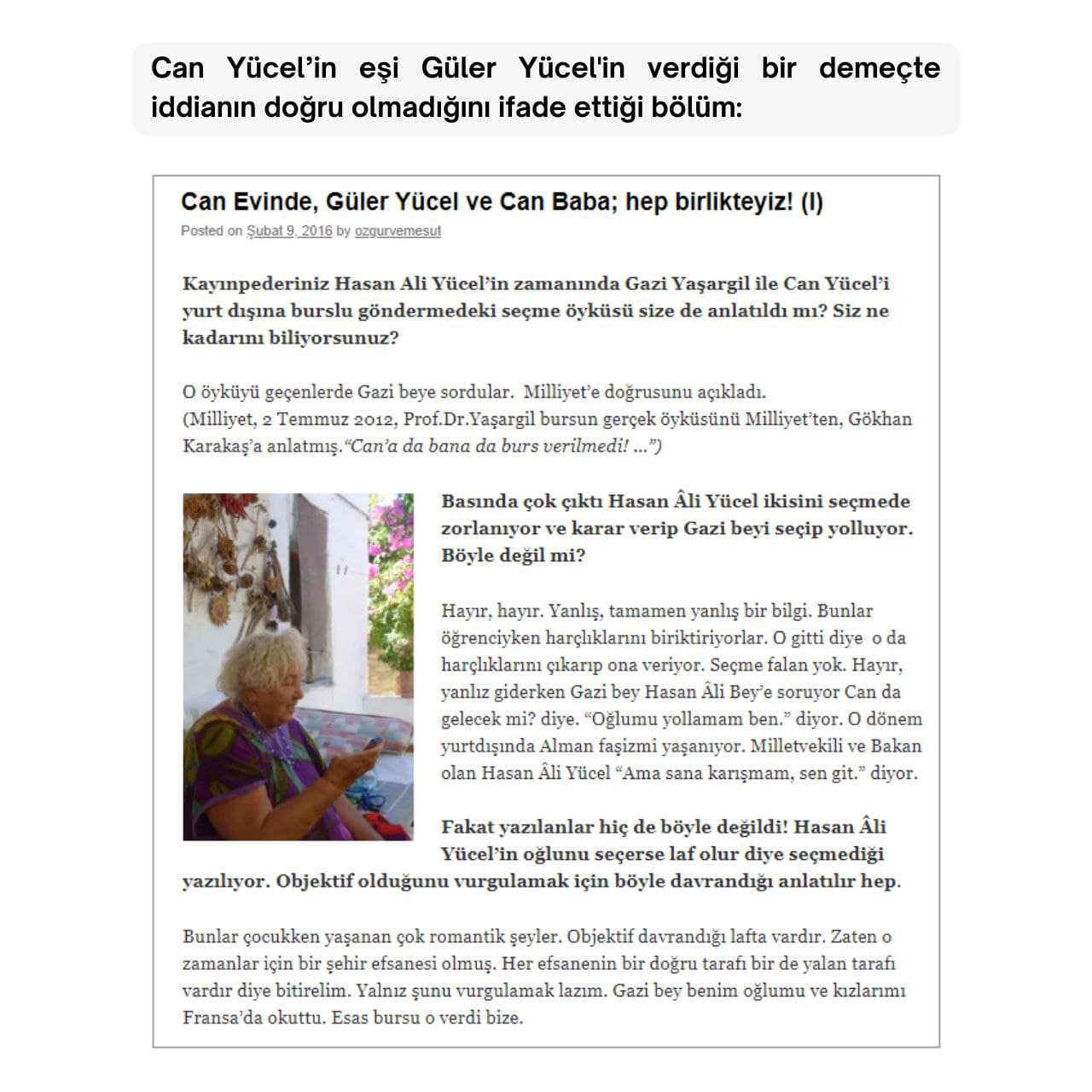 Kaynaksız? Olayın baş kahramanının beyanı mevcut. Hasan Ali Yücel’in Can Yücel yerine Gazi Yaşargil’i bursla gönderdiğine dair bir kaynak yok asıl.