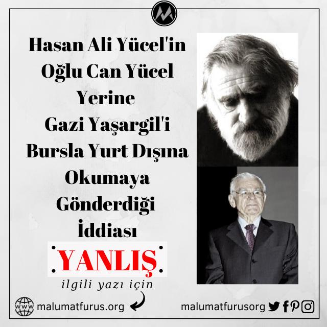 Dönemin Milli Eğitim Bakanı Hasan Âli Yücel’in oğlu Can Yücel yerine Prof. Dr. Gazi Yaşargil’e burs vererek yurt dışına gönderdiği yönünde bir hikaye yazılı basınımızda ve sosyal medyada bir hayli yer edindi geçmişte. Ancak bu iddia, hikâyenin kahramanı Gazi Yaşargil tarafından yalanlanmıştı.