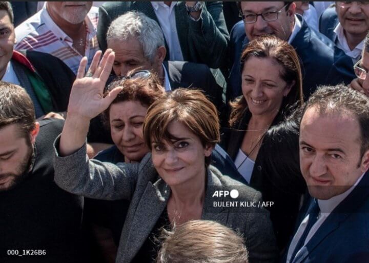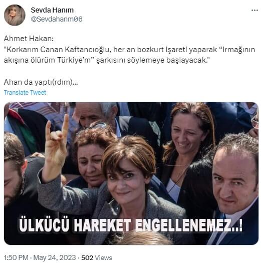 CHP İstanbul İl Başkanı Canan Kaftancıoğlu’nun bozkurt işareti yaptığı görülen dijital müdahale içeren fotoğrafın orijinali AFP’den Bülent Kılıç tarafından 2019 yılında sosyal medyada yaptığı paylaşımlar nedeniyle yargılandığı davanın çıkışında kaydedilmiş.
