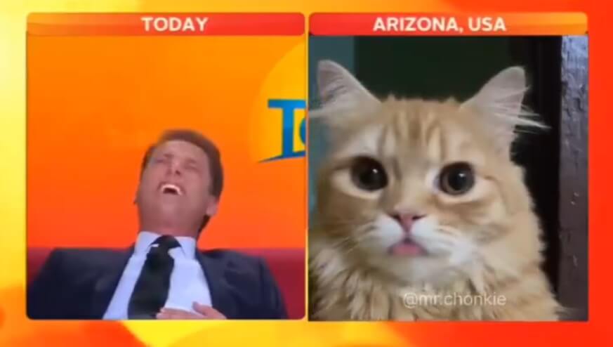 “Bugün” (“Today”) adlı programın sunucusu Karl Stefanoviç, “Huysuz Kedi” (“Grumpy Cat”) adlı kedi ile röportaj yaparken bir anda gülmeye başlamış.