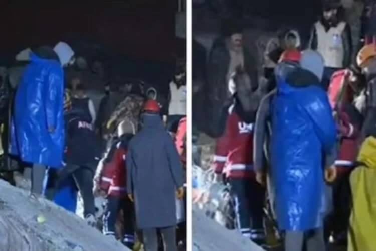 Cumhurbaşkanı Yardımcısı Fuat Oktay’ın Ankara’da AFAD merkezinde depremle ilgili güncel bilgileri paylaşırken TRT 1 ekranının diğer tarafında Şanlıurfa’dan verilen görüntülerde yağmurluk giyen bir kişinin bir itfaiye erinin cep telefonu çaldığı anların görüldüğü ileri sürülmüştü.