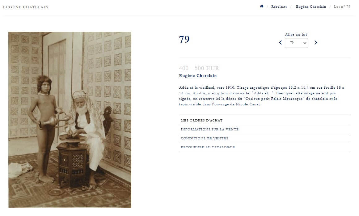 Fotoğrafın, oryantalist egzotik fotoğrafların kolonyal eğiliminin bir parçası olarak Tunus gibi ülkelerde çıplak modelleri sahnelemesiyle tanınan Fransız fotoğrafçı Eugène Chatelain tarafından sahnelenmiş olması olası.