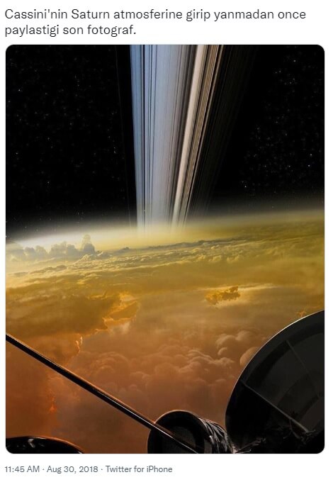 “Cassini’nin Satürn atmosferine girip yanmadan önce paylaştığı son fotoğraf” notuyla paylaşılan görsele değineceğiz…