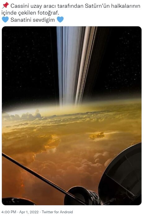 “Cassini uzay aracı tarafından Satürn’ün halkalarının içinde çekilen fotoğraf” olduğu iddiasıyla bahse konu görseli aktaran paylaşım örnekleri şöyle sunulabilir: