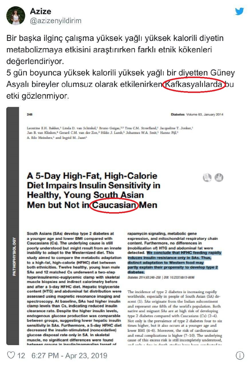 Makalede beyaz ırkı tanımamak için kullanılan “Caucasian” sözcüğünün Türkçemize “Kafkasyalı” olarak hatalı şekilde çevrildiği bir diğer örnek: