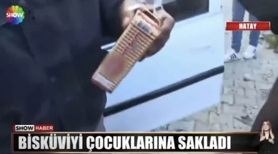 Show TV bu görüntüyü “Bisküvileri çocuklarına veremedi” başlığıyla “biraz önce acı haberler geldi” notuyla sundu.
