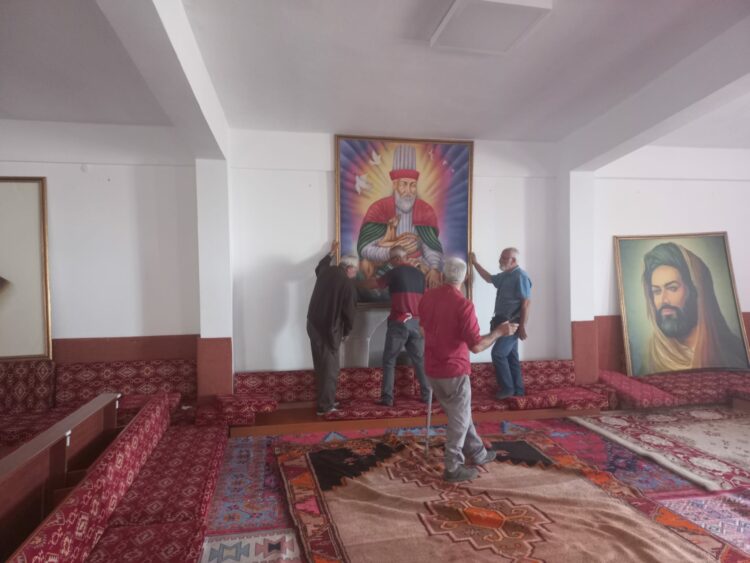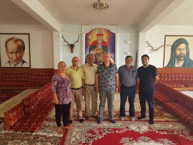 Adı geçen cemevinin tadilat sonrası fotoğraflarında soldan sağa Atatürk, Hacı Bektaş-ı Veli ve Hz. Ali fotoğraflarının (cemevi dedesinin postunun arkasındaki değil, yan) duvarda asılı olduğu görülebiliyor.