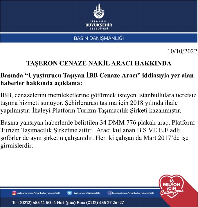 Adı geçen şoförlerin İBB bünyesinde kadrolu çalışan olmadığı; ancak, ilgili cenaze nakil görevlendirmesinin İBB Mezarlıklar Şube Müdürlüğü tarafından yapıldığı anlaşılmaktadır.